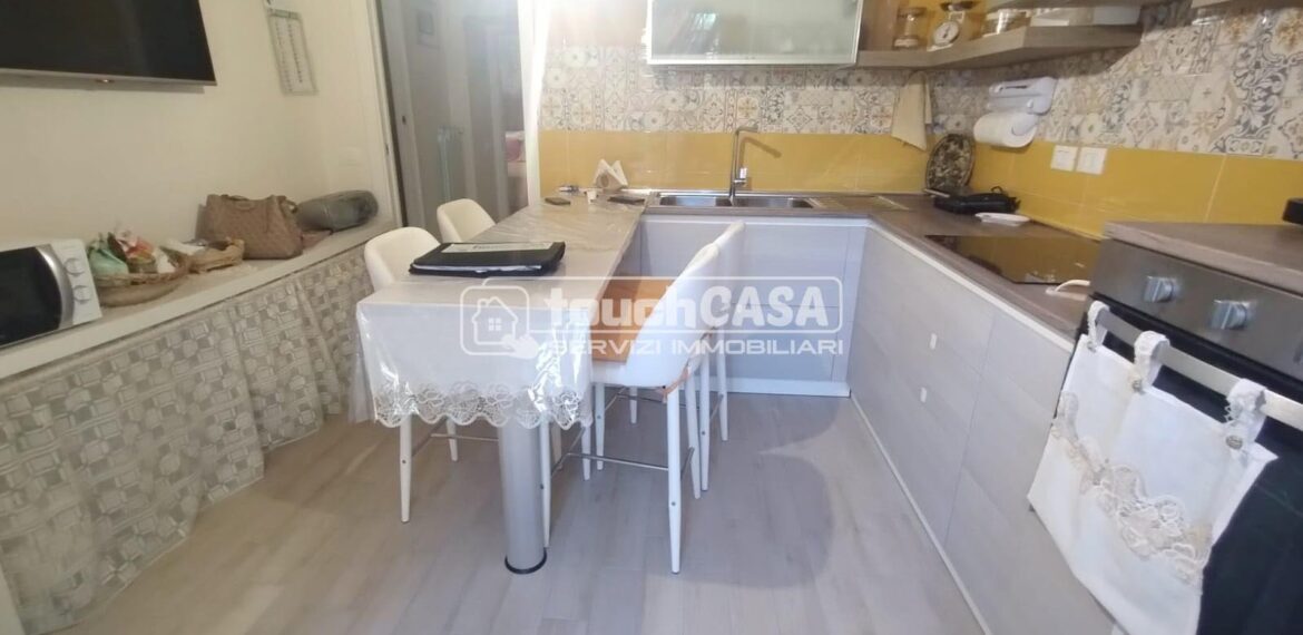 Suddiviso in: salone con cucina abitabile, corridoio, 1 camera da letto e 2 bagni.