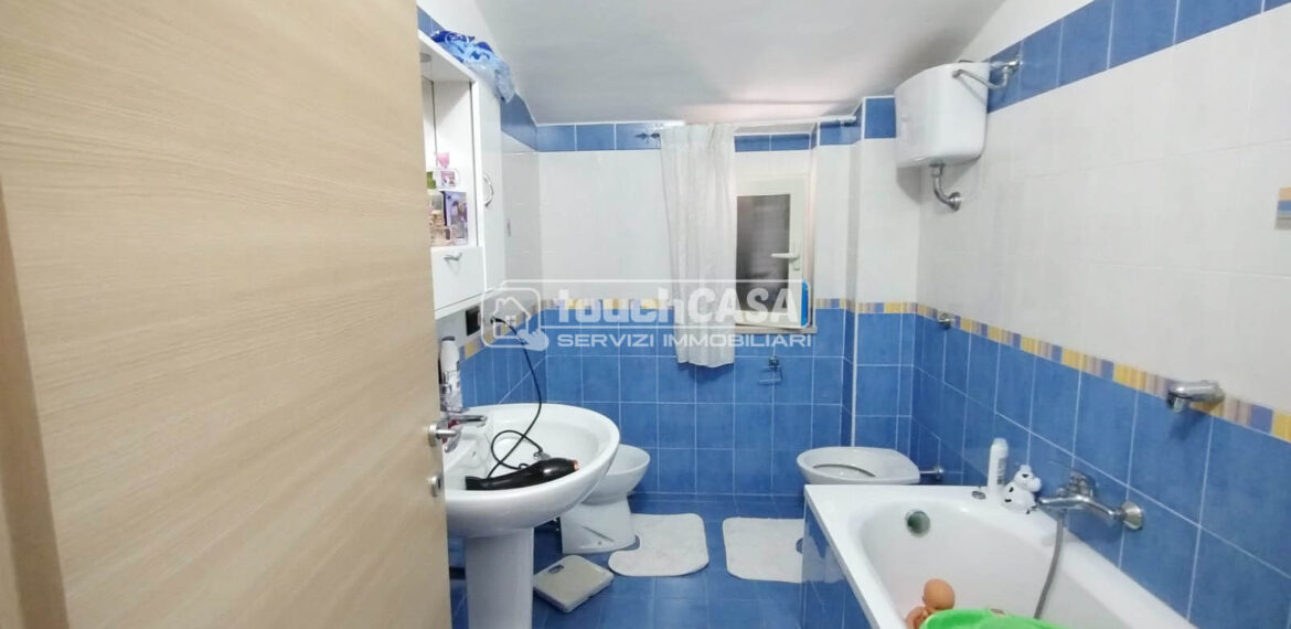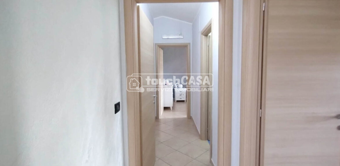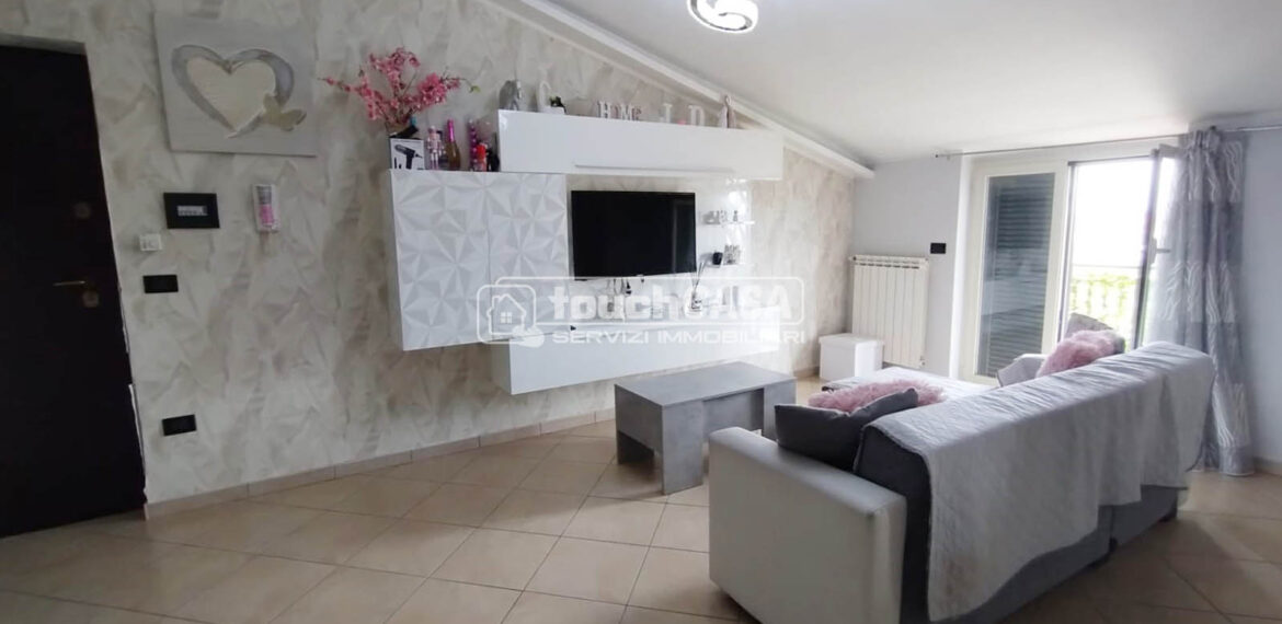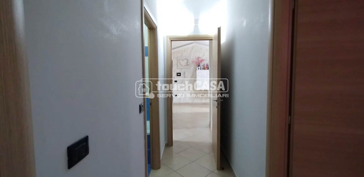 Composto da: ampio salone con cucina abitabile a vista, corridoio, 1 camera matrimoniale, 1 cameretta e 2 bagni.